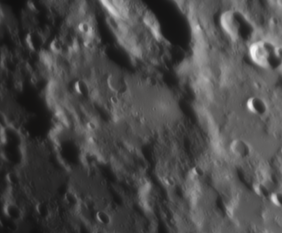 Cette mosaïque est saisissante avec de multiples formations géographiques spectaculaires. La première se nomme le mur droit, on devine pourquoi, c’est évident. Ce mur et son ombre sont très spectaculaires, on peut voir aussi un visage. En dessous, la plaine murée Deslandres, une formation complexe parsemée de cratères de toute…