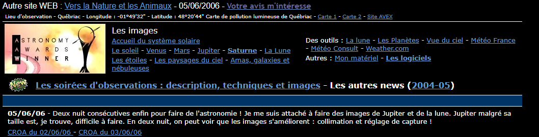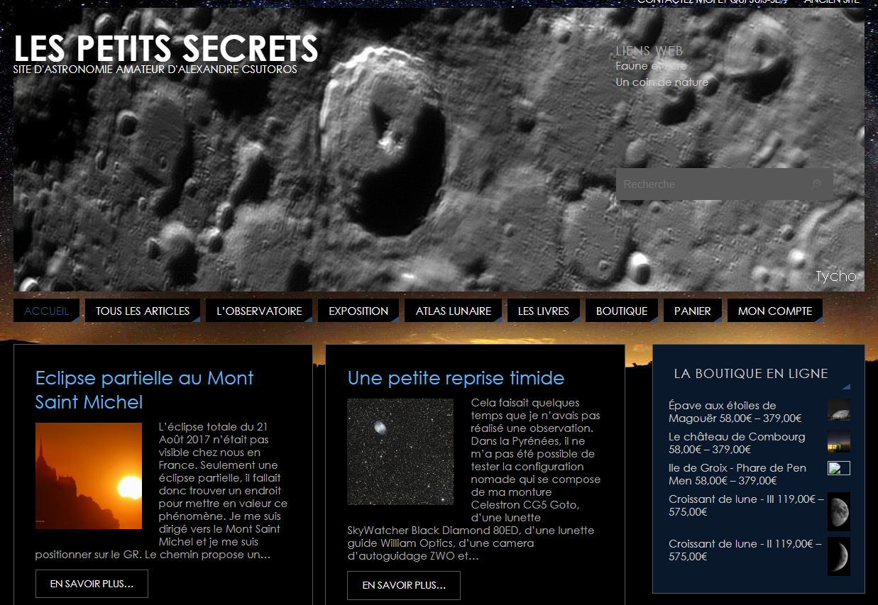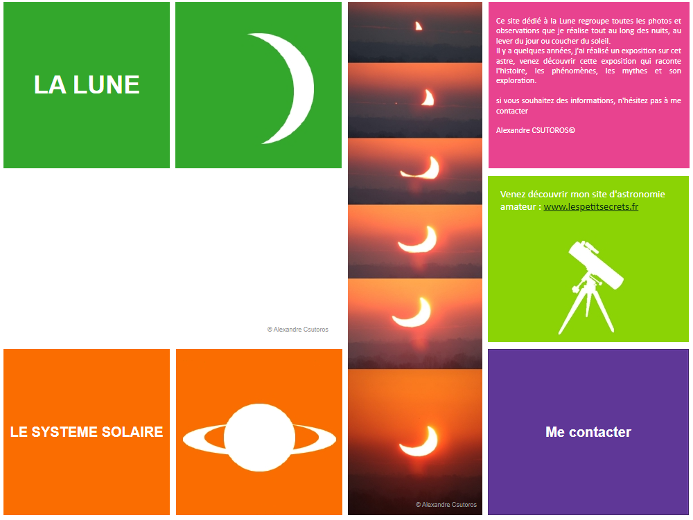L’aventure du site commence en 2006 et accompagne depuis mes projets, mes observations et mon cheminement personnel autour de l’astronomie et de la Lune. Plusieurs noms et versions se sont succédé avant de prendre la forme actuelle.